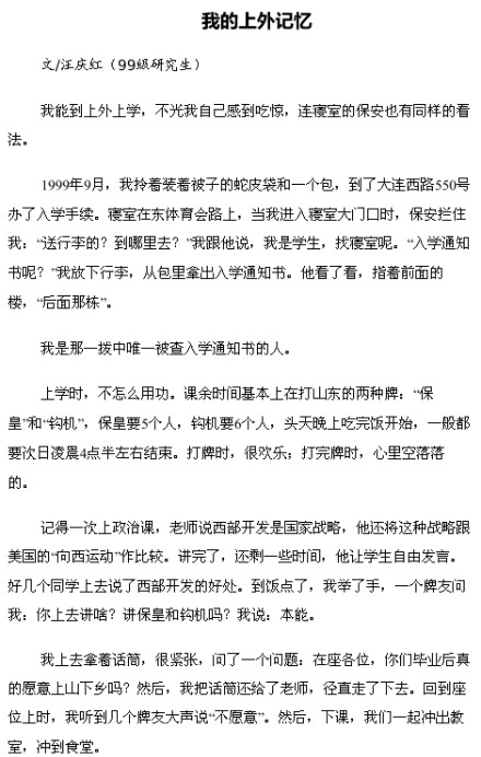 @上外研会:#来自上外的你#【汪庆红(99级研究生)——我的上外记忆】:“我能到上外上学,不光我自己感到吃惊,连寝室的保安也有同样的看法。”学校报到第一天,遭遇生活区保安查录取通知书,这样的奇葩遭遇你有么?